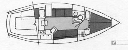 Roomy family cruiser. Electronics include radar, GPS, VHF, loran, speed meter and depth sounder. Main with lazy jacks, 150% genoa with roller furling, and bimini. Cruising comfort is enhanced by having the galley in the more modern island format plus pressure water (cold), two burner alcohol stove, marine head with holding tank, a shower and 120 volt shore power. Hull is white with brown trim and a white deck. Wheel steering. Two cylinder Yanmar diesel (13 HP).