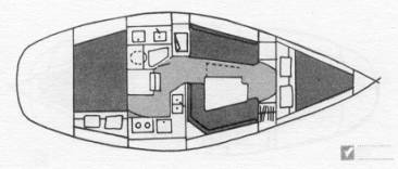 Sailing is easy with all internal halyards led to the cockpit, main with two slab reef points, a genoa on Harken roller furling and Lewmar self tailing #30 primary winches. Auxiliary power is a fresh water-cooled 18 HP Yanmar diesel engine with low hours. Other features include a walk through transom, bimini, five hatches, seven opening ports, cockpit table and cushions, Alder Barber refrig, Force 10 propane grill, alcohol stove/oven, marine head with Y-valve, shower and hot/cold pressure water. Electronics include VHF, Autohelm Tri-Data (speed, depth and log), Autohelm 4000 autopilot, loran and stereo. Anchor is a 25 LB CQR with rode.